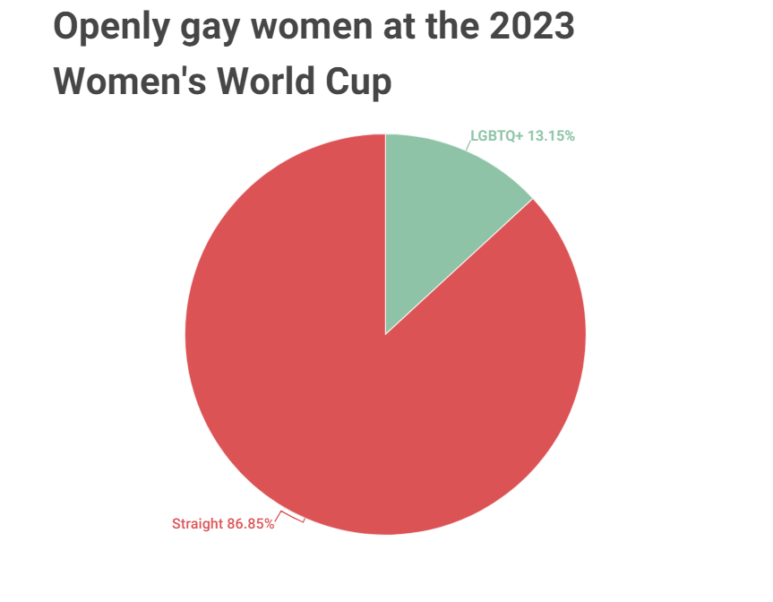 Female footballers who were openly gay at the 2023 World Cup. At least 96 of the 730 women who competed were part of the LGBTQ+ community.