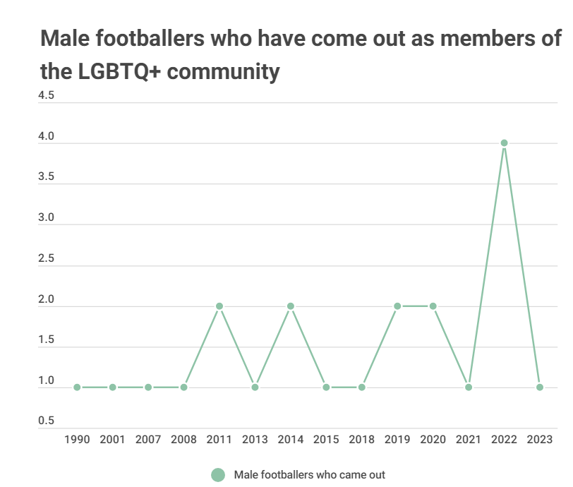 A graph of very year when a male footballer has come out as a member of the LGBTQ+ community.